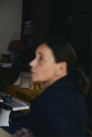 Isabelle: My style is more 1940s than today’s silhouettes. I do love fashion, yes, because I love colours, fabrics and design. During the Covid lockdown, I found myself stuck at my husband’s place, whose studio is in Arles. I hadn’t imagined we’d be stuck there for two months. I only had a small suitcase, and during those two months, I rummaged through his wardrobes and borrowed his clothes. It was perfect. I’d say I feel most comfortable in a fairly minimalist style, a bit masculine, but with a touch of femininity. I love Martin Grant’s timeless coats, and I mix things up by always pinching François’ shirts. For the past two years, I’ve been going to Kerala, in India. I found two tailors on the beach, Vishnu and Bijoux, and they’re the ones who make my entire summer wardrobe. I enjoy adapting Indian men’s clothing in cheerful colours and I try to stick to what suits me; that’s the benefit of age – after all these years, you know what looks good on you.