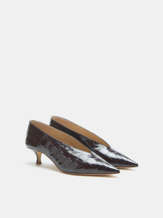 Babouche Kitten / Coco Brown Leather Croc Effect