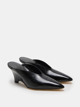 Le Monde Béryl - Victoria Wedge Mule, Black Leather Eel Effect