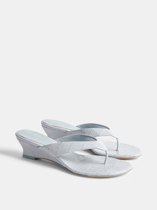 Micro Wedge Thong / Ice Blue Leather Croc Effect