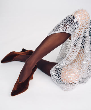 Luna Slipper in black mesh, with a cushioned calf leather insole and leather piping. 8mm heel. Made in Italy.